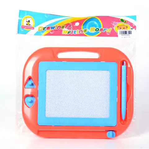 Svinčnik, ki ga nikoli ne zmanjka? S to risalno tablo je to mogoče, saj lahko kot magnetna risalna tabla na to tablo s peresom narišete in napišete karkoli. Risalna tabla je dobila tudi priročne klešče in držalo za svinčnike, pritrjeno z vrvico, da med uporabo ne izgine. Poleg tega sta v njem dve obliki, s katerima lahko natisnete na risalno površino, ki jo, ko je polna, morate le povleči drsnik in s tem smo izbrisali prejšnja dela. To je lahko odlično za vadbo risanja številk, oblik in črk.