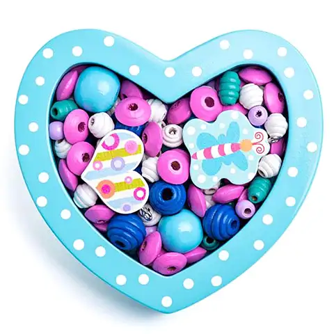 S pletenjem lesenih, barvnih biserov različnih oblik na vrvico si lahko dekleta ustvarijo izjemni nakit. Za pripravo verižic in zapestnic bodo potrebovale ročne spretnosti, nakit pa lahko dopolnijo še z enim od dveh medaljonov, srcem ali metuljčkom. Preseneti svojo najboljšo prijateljico in ji podari lastnoročno ustvarjeni, čudoviti nakit!