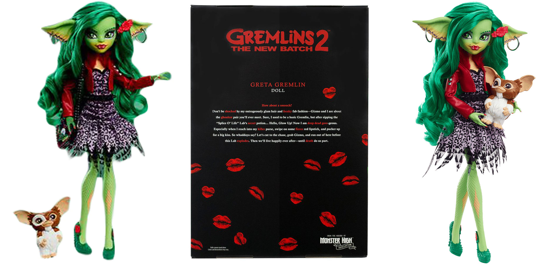 Greta Gremlin je najnovejša članica serije Monster High Skullector, ki je nastala v koprodukciji z Warner Bros. Nova lutka, ki temelji na Gremlini 2, ima tudi miniaturnega Gizma, ki dopolnjuje njen videz.