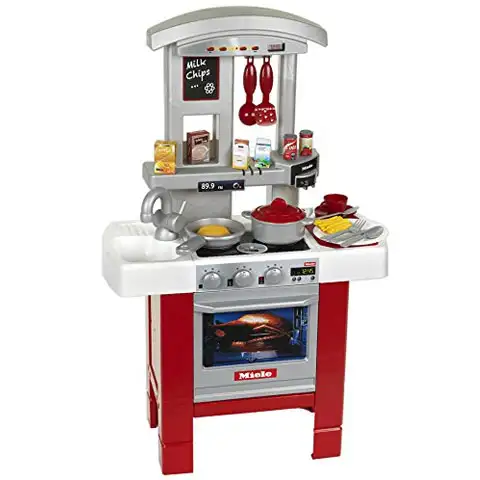 S pomočjo Miele Premier igralne kuhinje lahko iz svoje otroške sobe v trenutku pričaraš super malo kuhinjo. 90 cm velika kuhinja vsebuje vse potrebno za delo v kuhinji. Na kuhalni plošči lahko v loncu skuhaš svojo najljubšo juho ali pa fine testenine, v spodnji pečici pa spečeš hrustljavega piščanca. Fine jedi nato lahko postrežeš na krožnikih, po opravljenem delu pa ne pozabi niti na pranje! Odlična kuhinja, opremljena z zvokom in številnimi dodatki, za še bolj imenitno igro.