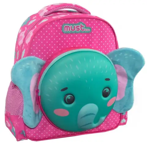 Otrokom bo sigurno všeč ta pravljično ljubka, slonja ovalna torba. Na sprednji strani torbe je prikupna slonova glava, ki je tudi žep na zadrgo. Torba ima tudi velik osrednji žep, tako da lahko igrače ali stvari za vrtec v njih enostavno razvrstite. Nahrbtnik je opremljen z nastavljivima naramnicam, da je vedno udoben. Njegove mere so 31x27x10cm, tako je udoben tudi za manjše otroke. Ob straneh sta tudi mrežasta žepa, kamor lahko vstavite ključe ali bidon.