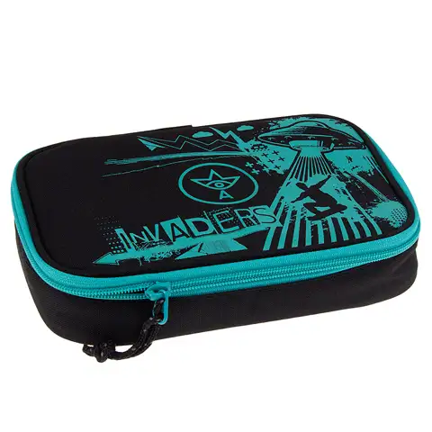 Peresnica, na črni osnovi opremljena s turkiznim vzorcem, je lahko odlična izbira za vašega otroka, zahvaljujoč visoki kvaliteti bo mu namreč nudila veliko pomoč pri razvrščanju in prenašanju pisalnih potrebščin. V notranjosti ima gumijasta držala, v katerih lahko shranjuje najpomembnejše in najpogosteje uporabljane pisalne potrebščine. Zahvaljujoč velikosti 155 x 225 x 45 mm se lahko v notranjost udobno namestita tudi po eno ravnilo in šestilo.