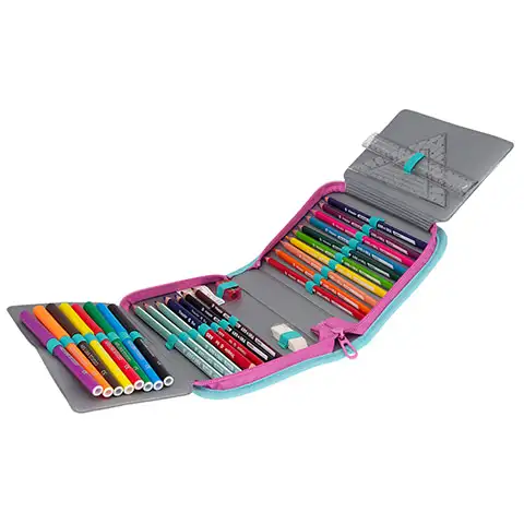 Roza in ostale cvetne, živahne barve ustvarijo punčkam čarobni svet, še posebej če je s temi barvami pobarvana ena peresnica. Pridobila boš pozornost vsake sošolke in zanimalo jih bo tudi to, kaj se nahaja v peresnici. Seveda poleg barvnih svinčnikov ne morejo manjkati tako koristne stvari, kot so grafitni svinčniki, radirka, ravnilo in šilček. Peresnica se zapira z zadrgo, tako se lahko nešteto pisalnih potrebščin, ustrezno izbranih za začetek leta varno prenaša v njej.