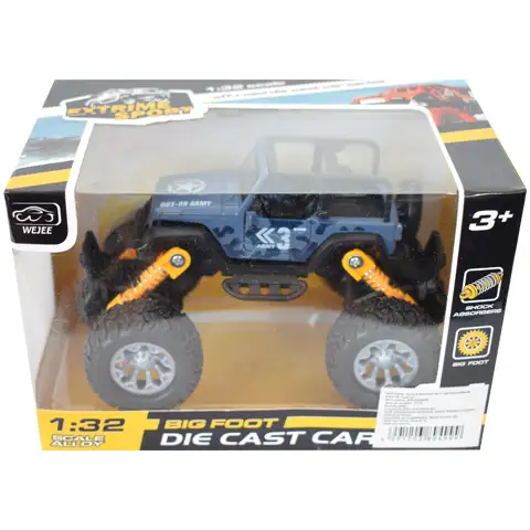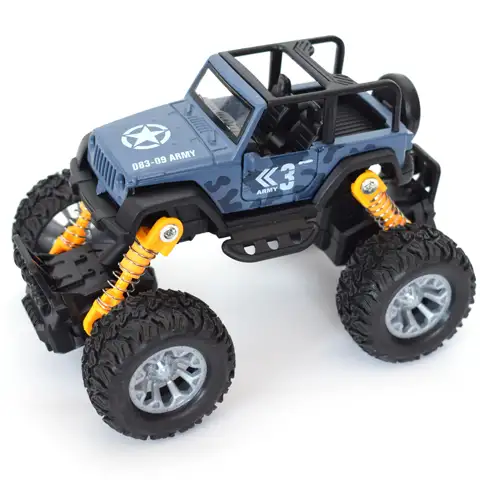 Vsi majhni fantje bodo navdušeni nad tem spektakularnim Off-Road terenskim vozilom, klasični Jeep s ponjavo je namreč doživel dokaj drastične spremembe. Z velikanskimi kolesi in gigantskimi vzmetenji je to vozilo primerno za spopad z najbolj ekstremnimi terenskimi pogoji. Povprečno 10 centimetrov dolgo vozilo otrokom prinaša velika igralna doživetja, zahvaljujoč s podrobnostmi bogati izdelavi in pogonu na poteg pa lahko vozilo samo od sebe prevozi kar nekaj metrov.