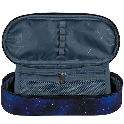 Ta peresnica s svojo zvezdnato osnovno barvo in našitki na pokrovu upodablja vznemirljivo vzdušje raziskovanja vesolja in astronomije. Sigurni ste lahko, da jo bodo z veseljem uporabljali vsi fantje, ki jih zanimata raziskovanje vesolja in astronomija. Ovalna oblika je izredno praktična, saj ponuja prostor za ogromno pisalnih potrebščin. Najpogosteje uporabljana pisala ali svinčniki se lahko pritrdijo tudi na zgornjo plast, tako bodo ob potrebi vedno pri roki. V mrežastem notranjem žepu se lahko držijo tudi manjši pripomočki, tako jih ni treba iskati na dnu peresnice.