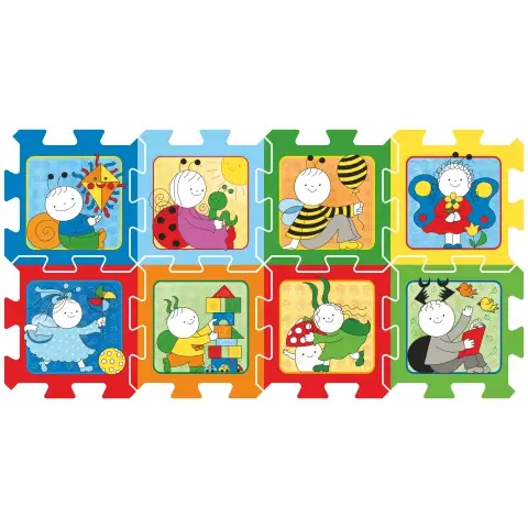 Čudovita spužvasta sestavljanka, iz 8 delov, je idealna igrača za male otroke, saj so posamezni elementi zlahka sestavljivi, lahki in mehki. Obenem se lahko, zahvaljujoč temu, uporabijo za okras katere koli otroške sobe ali stopalne površine. 33cm veliki, spužvasti elementi so okrašeni s podobami glavnih junakov zgodb Berry and Dolly, kot njunih prijateljev. Sestavljanka je združljiva tudi z ostalimi 33cm velikimi, spužvastimi sestavljankami.