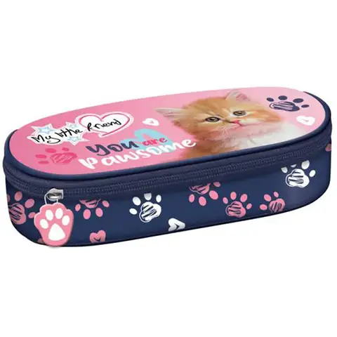 Mačji vzorec in vesele barve prispevajo k privlačnemu videzu peresnice. Peresnica valjaste oblike My Little Friend: Muca je popolna izbira za otroke, ki imajo radi ljubke in igrive dizajne. Odkrijte peresnico valjaste oblike My Little Friend: Muca, ki združuje stil in funkcionalnost za organizirano in očarljivo shranjevanje šolskih potrebščin!