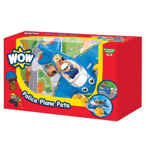 Pomagaj Pete-u vzdrževati red, leteč nad mestom bo namreč vsak prebivalec zagotovo varen. Modro-belo policijsko letalo je opremljeno z rumenimi, vrtljivimi propelerji in skrivnimi vrati, za katerimi se skrivajo presenečenja. Na posebnega šoferja helikopterja Foley-a, izvrstnega policijskega častnika, lahko vedno računaš, z veseljem bo namreč pomagal pri vzdrževanju reda, med vznemirljivimi leti pa ga pospremi tudi njegov zvesti pes, Buddy in tako bo delo minilo v izredno dobri družbi. Priskrbi si čim prej te igrače, izdelane iz nelomljive plastike vrhunske kvalitete in že se lahko letalna avantura začne!