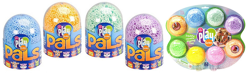Play Foam Pals je na voljo v več izvedbah, najbolj priljubljena pa je izvedba pakirana v plastično škatlico oblike kletke, v kateri se nahajajo penaste kroglice različnih barv. Vendar pa to še glede vsebine ni vse, saj se v obliki posebne male plastične živalce v notranjosti skriva tudi presenečenje. Na nalepljeni etiketi lahko preberemo napis "Series 1", kar pomeni prvo izdajo igrače in seveda da lahko pričakujemo nadaljnje izdaje v različnih barvah in različnimi živalmi.