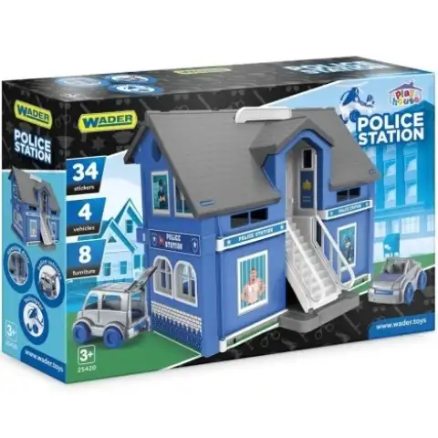 Waderjev fantastičen Play House policijski set je oblikovan po vzoru prave policijske postaje. Set ima toliko razburljivih možnosti za igro, saj je nadstropna hiša opremljena in v kompletu so tudi 3 vozila. Policija je izdelana iz trpežne plastike, ki ne vsebuje zdravju škodljivih snovi, idealna za otroke od 3. leta starosti. Igrače Wader med starši slovijo tudi po svoji izjemni vzdržljivosti. Velikost sestavljenega kompleta je pribl. 59 x 39 cm.
