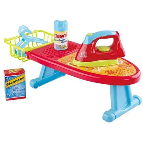 Z zelo uporabnim kompletom lahko presenetite svojo punčko, ki ga bo zagotovo vesela, saj se lahko preizkusi v gospodinjskih opravilih. Komplet vključuje plastično likalno desko s košaro za shranjevanje, kot tudi čistilni prašek in pršilo za igranje. Poleg tega seveda ni mogel izostati niti likalnik, na katerem sta tudi gumb in vrtljivo regulator. S tem kompletom se lahko vaša punčka počuti kot prava odrasla in se hkrati tudi zabava.