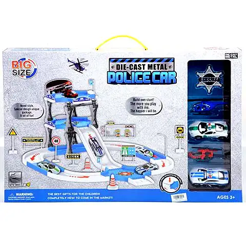 S tem super policijskim kompletom, ki vsebuje 2 avtomobilčka, dva helikopterja in tudi sestavljive elemente avtoceste, se lahko otroci podajo na napeta posredovanja. Večnadstropna zgradba otrokom ponija izjemne možnosti med igro, s strme rampe se lahko avtomobilčki vzamejo zagon tudi za dirko. S priloženimi vozili se lahko vznemirljiva igra takoj začne!
