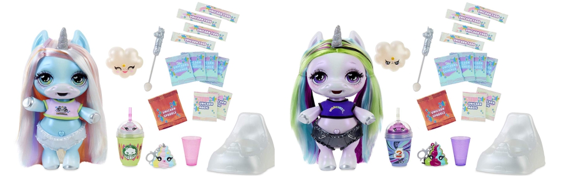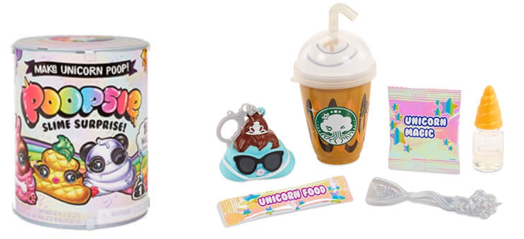 Med ostalimi pripomočki najdete tudi mešalno žlico, majhno skodelico, prenosni kozarec s pokrovom, samorog presenečenje na obesku za ključe in posebni kot puh mehki oblaček. Na voljo je tudi dopolnilni paket za igralni komplet Poopsie Slime Surprise, s pomočjo katerega lahko še dodatno podaljšate zabavo z vašim samorogom in nadalje proizvajate samorogov kakec v čudovitih barvah. V 6-delnem paketu presenečenja se boste zagotovo srečali z hrano za samoroga, čarobnim prahom unicorn magic, kozarcem in figurico presenečenja.
