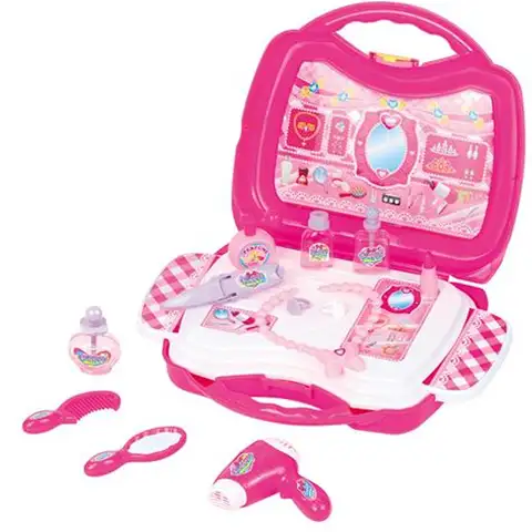 Svoji punčki lahko priskrbite posebni komplet, ki ji bo zagotovo všeč, še posebej če se rada lepotiči. Komplet je na voljo v posebnem prenosnem kovčku, ki je lahko odlična izbira. Kovček ima rožnato barvo, ki je zelo dekliška in bo zagotovo všeč vaši punčki. Torba vsebuje različne lepotne dodatke, med drugim glavnik, ogledalo, sušilec za lase, stekleničke in nakit, s katerimi se bo vaša punčka zagotovo lahko veliko igrala.