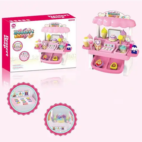 Otroci se radi igrajo igre, med katerimi se lahko preizkusijo v vlogi kupca in prodajalca, ta ljubki pult s sladicami pa jim ponuja izjemno priložnost za to. Komplet vsebuje čarobni pult s sladicami, ki z roza barvo zagotavlja zares dekliški videz, nad pultom pa je izobešen ljubki sončnik. Za veličastnost igrače poskrbi široka izbira, sestavljena iz pisanega sladoleda, lizik in privlačnega peciva. Zahvaljujoč temu kompletu bodo lahko otroci izvrstno preizkusili proces nakupovanja in prodajanja.