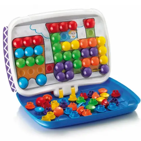 V tem izjemnem kompletu zagotovo najdeš igračo za sebe, poleg že dobro znanih avantur z bucikami lahko namreč izživiš tudi svojo ljubezen do risanja. Ta kompaktna torba 2-v-1 v sebi skriva 60 večjih barvnih bucik, s katerimi lahko enostavno ustvariš svojo zamišljeno sliko, ob tem pa so ti lahko v pomoč tudi vnaprej pripravljeni motivi. Potrebno jih je le namestiti pod prosojno načrtovalno površino in že bodo vidna mesta za posamezne barve. Na drugi strani načrtovalne table pa lahko pogumno pokažeš tvoje risalne spretnosti, na koncu pa lahko svojo stvaritev tudi enostavno zbrišeš in začneš z zabavo z začetka. Igrača je pakirana v praktično, prenosno torbo.
