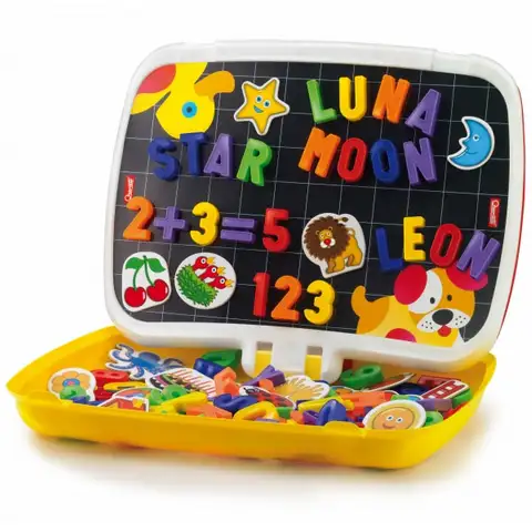V tej zelo praktični torbi z ročajem najdeš dve izredno vznemirljivi igri. Med brezskrbnim izživljanjem risalne ljubezni te ne bo nič oviralo pri ustvarjanju čudovitih slik na pralni površini table, v kompletu najdeš tudi 3 odlične flomastre. Tudi bolj drugačna igra ne bo problem, potrebno je le obrniti tablo in že se pred tabo razprostre očarljiv svet magnetov. Med igro lahko uporabiš barvne črke, številke in figurice iz torbe. Prijetno zabavo.