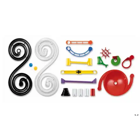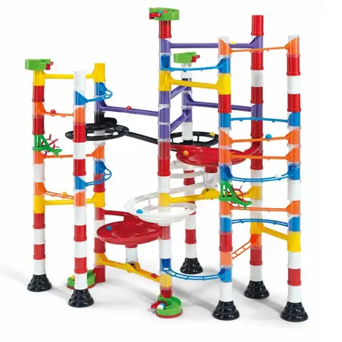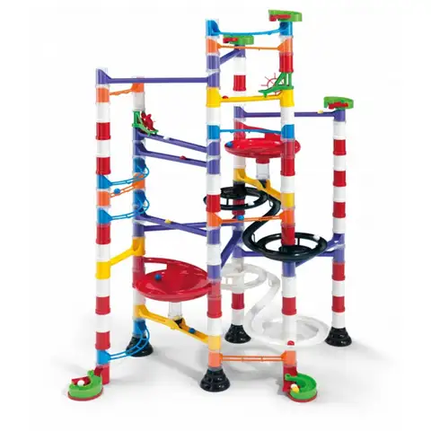 Sestavi si svojo lastno stezo s kroglicami! Zgradi strukturo, prikazano na škatli ali pa pogumno eksperimentiraj in pripravi svojo lastno načrtovano! Tobogani, ravnine in obokani odseki, različni mostovi in stebri, lijaki, vse to ti je na voljo med ustvarjanjem. Zahvaljujoč temu lahko ustvariš drzne proge za majhne kroglice z nešteto variacijami. Elementi v veselih barvah in veselje ob gradnji ti bodo zagotovo pričarali nasmeh na usta ter ti zagotavljajo nepozabno večurno zabavo.