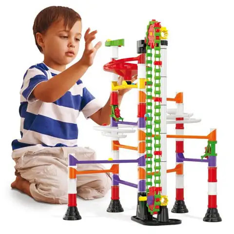 Zgradi si svojo lastno super stezo s kroglicami! Zgradi stezo, prikazano na škatli, lahko pa tudi izvajaš svoje lastne načrte. Med ustvarjanjem so ti na voljo tobogani, ravne in ovinkaste tračnice, različni mostovi in stebri ter lijaki. Zahvaljujoč tem elementom lahko zgradiš spektakularne steze za majhne kroglice v neomejenih variacijah. Če načrtuješ tudi pot kroglic do dvigala, se ne bo potrebno ukvarjati niti s ponovnim nameščanjem kroglic na vrh steze, saj bo to namesto tebe opravilo dvigalo. Veseli barviti elementi in veselje ob gradnji bo ti zagotovo pričaralo nasmeh na usta ter te dolge ure brezskrbno zabavalo.
