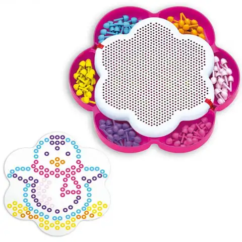Bucike v obliki rože omogočajo ustvarjanje najbolj raznolikih slik, s pomočjo več, kot 100 bucik v različnih barvah. Na začetku lahko mirno delaš na podlagi šablon, komplet vsebuje tri različne, po določenem času pa pusti prosto pot svoji domišljiji. Odlična zabava, hkrati razvija otrokovo kreativnost, razpoznavanje barv in koncentracijo.