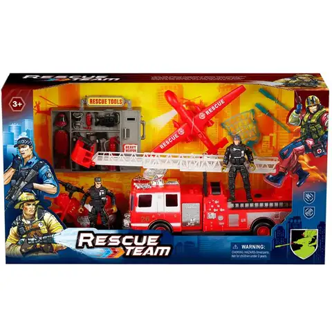 Otroci obožujejo akcijske igrače in ta gasilski igralni komplet zagotovo vsebuje vse, s čimer lahko malčki za svoje junake izmislijo najbolj razburljive avanture. V kompletu je seveda dobro opremljen gasilski avtomobil z lestvijo in dron, s katerima lahko odbrzijo na prizorišče. Dve akcijski figurici pa lahko z nešteto pripomočki opravijo tudi najbolj ekstremna posredovanja.Igralni kompleti Rescue Team bodo med majhnimi fanti zagotovo poželi velikanski uspeh, ponujajo namreč možnost za odigravanje zelo drznih zgodb in akcij.