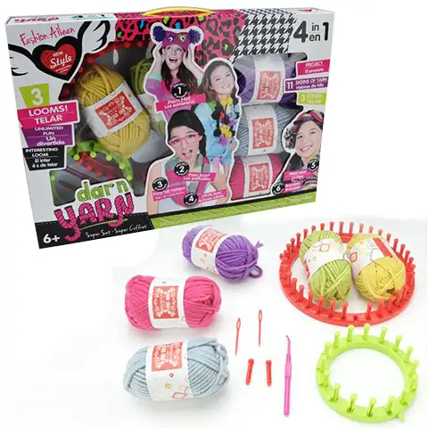 V paketu seta za tkanje 4 v 1 lahko vaš otrok najde vsa orodja in materiale, potrebne za učenje prvih korakov tkanja. S štirimi prejami različnih barv lahko v trenutku ustvarite modna oblačila, pa naj bo to klobuk, šal ali kapuca za vašo najljubšo lutko. Z uporabo seta lahko izboljšate svojo spretnost in le vaša domišljija lahko postavi mejo za vaše ustvarjanje.