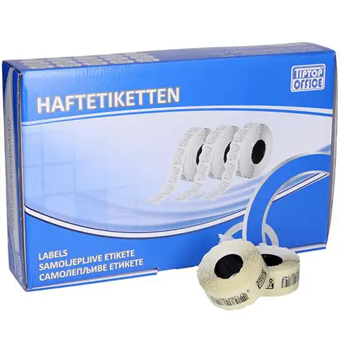 Etikete za cene so vse do dandanes v uporabi, ne glede na to, da blagajne izdelke večinoma odčitajo na osnovi črtne kode, za kupce so namreč etikete za cene najbolj razumljiv vir informacij. Na tem zvitku so etikete velikosti šestindvajsetkrat šestnajst milimetrov, na katere lahko s pomočjo standardnih strojev za označevanje nanesemo ceno ali datum oziroma kaj nam uporabljen stroj omogoča. Na etiketah bele osnovne barve bo odtis izvrstno viden, zahvaljujoč samolepilni strani pa se bodo izvrstno zalepile na vsako površino.