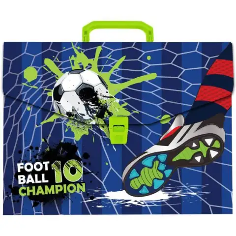 Ta posebna mapa bo zagotovo všeč nogometnim navdušencem, zahvaljujoč velikosti A3 pa je popolnoma primerna tudi za shranjevanje večjih risb ali dokumentov. Na ovitku mape je bleščeč nogometni prizor, ko napadalec žogo brca proti vratom. Mapa je izdelana iz močne, okolju prijazne eko-PP plastike, zahvaljujoč čemur bodo dokumenti popolnoma na varnem. Na vrhu mape je prijemalo, mapa pa se odpira in zapira s praktično zaponko. Debelina hrbtenice je 3cm, kar je primerno za shranjevanje približno 300 listov klasičnega papirja.