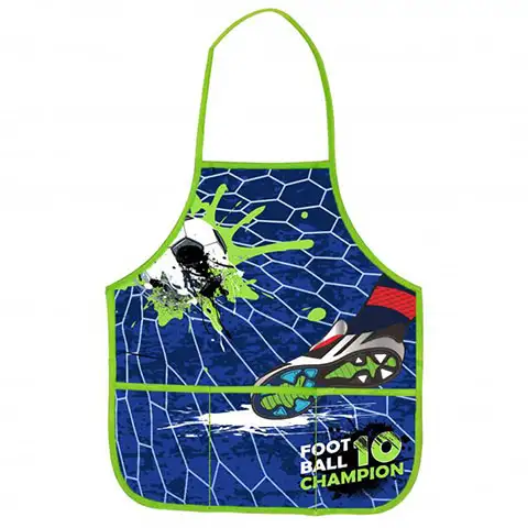 Z nogometnim motivom okrašen slikarski predpasnik bo nad nogometom navdušenim majhnim fantom sigurno všeč, v sprednjih žepih pa je veliko prostora za neuporabljene čopiče. Nočna mora je za vsakega starša, da si med ustvarjalnim ustvarjanjem oblačila zamažejo skupaj, vendar pa je nošenje predpasnika lahko odlična rešitev za takšne primere. Ta modri slikarski predpasnik služi prav reševanju takih težav, potrebno ga je le pred ustvarjanjem obesiti malčkom za vrat in že bo predpasnik enostavno zajel večino barve.