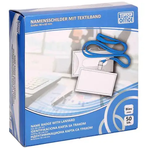 V ta majhni, vendar toliko praktičen pripomoček lahko vstavimo različne vrste identifikacije, vstopnico v obliki kartice ali tudi najem. Kartico lahko v prozorni plastični nosilec spustimo z lahkotnim gibom, nosilec pa nato s tekstilnim modrim ovratnim trakom obesimo za vrat. Poleg udobne nošnje bo identifikacija vedno pri roki, kar pohitri vstop.