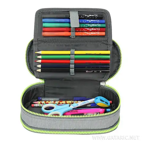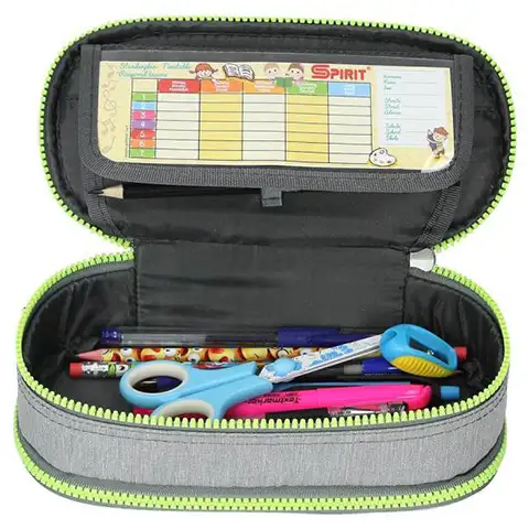 Dopolnite šolske potrebščine vašega otroka z izjemno kvalitetno peresnico Spirit, z neon zadrgami na svetlo modri osnovni barvi in ki svojemu uporabniku zagotavlja moderni videz. Z uporabo ovalne peresnice lahko svoja pomembna pisala varno in dobro sortirana prenaša med šolskim vsakdanom. Zahvaljujoč nadstropni izvedbi je v notranjosti mesto za ogromno pisal, zaradi dolžine 23cm pa se lahko vanjo vstavita tudi šestilo in ravnilo. . V notranjosti peresnice so tudi različni gumijasti pritrdilni elementi, v katerih lahko shranjuje barvice, flomastre in druga pisala.