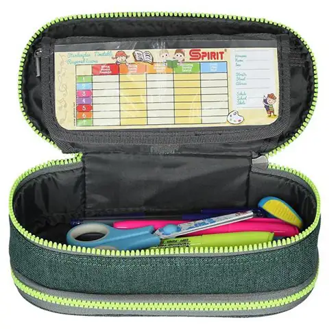 Temno in svetlo zelena barva se na Spirit peresnici izvrstno harmonizirata med seboj, kar uporabniku peresnice zagotavlja zares modni videz, med šolskim vsakdanom ali kar v pisarni. Zahvaljujoč izvedbi z dvema predelkoma in preklopnim ušesom je v notranjosti mesto za ogromno pisal, gumijasti pritrdilni elementi pa omogočajo izvrstno razvrščanje pisal. Zaradi zaradi dolžine 23cm se lahko vanjo vstavijo tudi šestilo, ravnilo in škarje, v notranjem prozornem žepu pa so lahko urnik in ostali pomembni dokumenti.