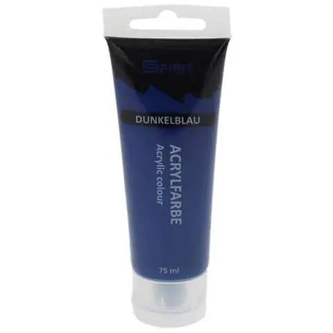 Modra barva zelo pogosto pride na paleto slikarskih umetnikov, prav zaradi tega bo ta tuba temno modre barve zagotovo pogosto uporabljena, obenem pa je tudi izvrstna osnova za mešanje novih barv. Spirit petinsedemdeset milimetrska akrilna barvica je dobila zares praktično pakiranje v tubi, kar omogoča enostavno in natančno dodajanje, barva idealne teksture pa ne vsebuje nobenih škodljivih snovi, v nasprotju zahvaljujoč visoki vsebnosti pigmentov izvrstno pokriva, zlahka se meša in se hitro suši.