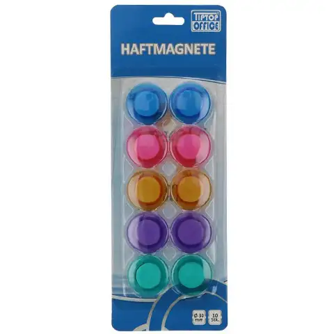 V tem 10-delnem kompletu magnetov najdete magnete različnih barv s plastičnim premazom, ki jih lahko izvrstno uporabite tako v pisarni, kot tudi pri šolski torbi ali doma na hladilniku. Magneti izvrstno pritrdijo liste papirja na tablo, zemljevide ali skice ter olajšajo delo, ni potrebno namreč z eno roko držati dokumente. Magneti za tablo so premera 30mm in so izvrstno primerni za pisarniško uporabo.