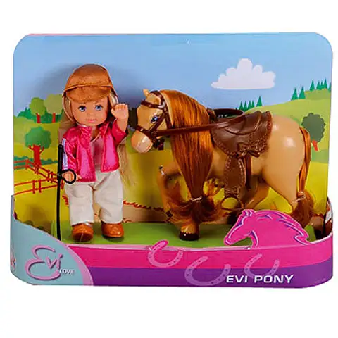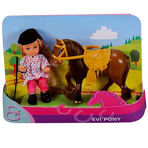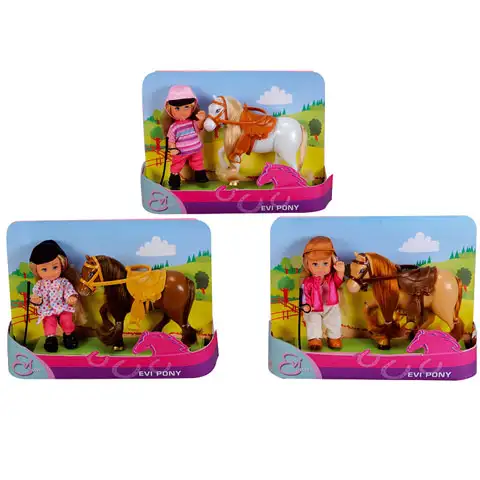 Poglej te pravljično ljubke lutke, med jahanjem na hrbtih majhnih ponijev. Posamezni komplet vsebuje po 1 lutko Eve in ljubkega majhnega ponija, seveda z za jahanje potrebno opremo. Tako lasje lutke, kot tudi griva in rep ponija se lahko češejo, lutka Eva pa se lahko zlahka posadi v sedlo. Izberi si najbolj všečen komplet.