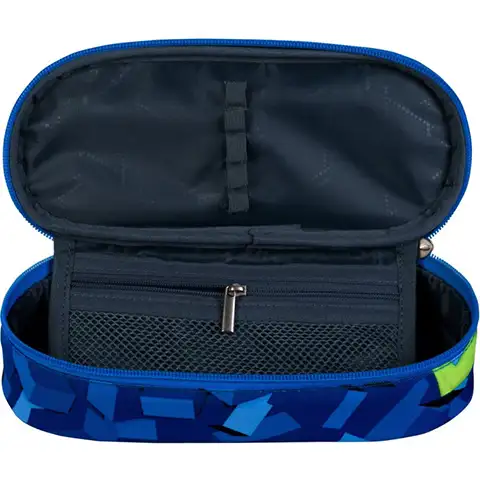Iz izjemno kvalitetnega, močnega tekstilnega materiala z vodoodbojnim učinkom izdelana peresnica je odlična izbira za vašega otroka, zahvaljujoč trajnosti ga namreč dolga leta spremlja v šoli in varno lahko v njej shranjuje svoje pisalne potrebščine. Modra osnovna barva peresnice je v izvrstni harmoniji s tridimenzionalnim kockastim motivom in svojemu uporabniku zagotavlja moderni videz. V peresnici je prostora za ogromno pisalnih potrebščin, zahvaljujoč dolžini 23cm se lahko v notranjost vstavita tudi šestilo in ravnilo. Po izvleku zadrge se v velikem notranjem predelku najde tudi ločilni jeziček, na katerem so trakovi, pritrjeni z gumo in v njih je mogoče namestiti najpogosteje uporabljene pisalne potrebščine.