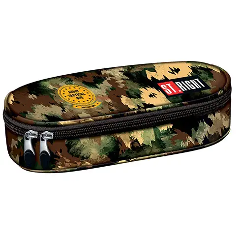 Izberite majhnim fantom zares drzno peresnico, ki bo zahvaljujoč vojaškemu kamuflažnemu vzorcu zagotovo požela velikanskih uspeh, hkrati pa je tudi notranja zasnova zares praktična in udobna. Zahvaljujoč ovalni zasnovi je v njej prostora za ogromno pisalnih potrebščin, najpogosteje uporabljane pa se lahko pritrdijo kar na pokrivno stran in tako bodo vedno pri roki, ko se jih potrebuje. V mrežast žep se lahko vstavijo drobnarije in tako jih ne bo treba iskati na dnu peresnice.