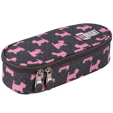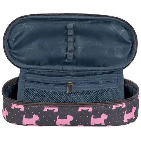 Ta ovalna peresnica bo zagotovo pospešila bitje srca vsaki punčki, ljubiteljici psov, za raznolikost in obenem pravo dekliškost temnega ozadja peresnica poskrbi namreč roza pasji motiv. Zahvaljujoč ovalni izvedbi bo v njej mesto za ogromno pisalnih potrebščin, izmed katerih se lahko najpogosteje uporabljani kosi pritrdijo tudi na pokrov in tako bodo vedno pri roki, ko se jih potrebuje. V mrežasti žep se lahko vstavijo drobnarije, ki jih tako ni potrebno iskati na dnu peresnice.