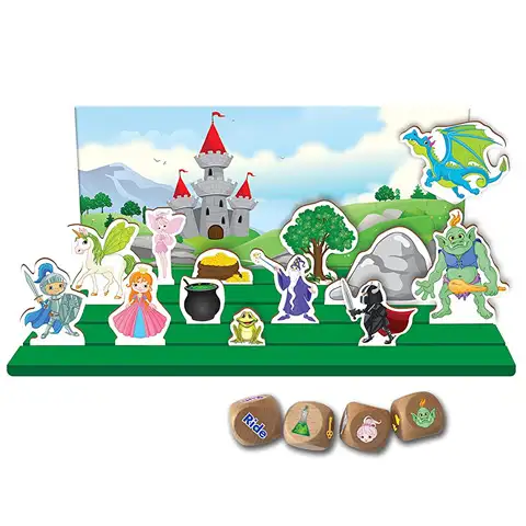 Misliš, da povedati dobro zgodbo niti ni tako težka naloga, s to igračo pa se lahko tudi ti preizkusiš v vlogi pripovedovalca zgodb. Postavi figurice, izberi ozadje in meči s kockami, tako lahko takoj začneš s pripovedovanjem zgodbe, glavni junaki katere bodo kraljična, junaški vitez, zmaj, čarovnik in številne druge zanimive figurice. Tell-a-Tale je odlična izbira otrokom, s pomočjo pisanih figuric in ozadij lahko namreč izoblikujejo manjši oder, s štirimi kockami iz kompleta pa zgodbi dajo glavno nit. Igrača v veliki meri pripomore k verbalnemu izražanju in komunikacijskem razvoju otrok. Ker ni igralnih pravil, pripovedovanje zgodbe ni omejeno in otrokom daje velikansko svobodo.
