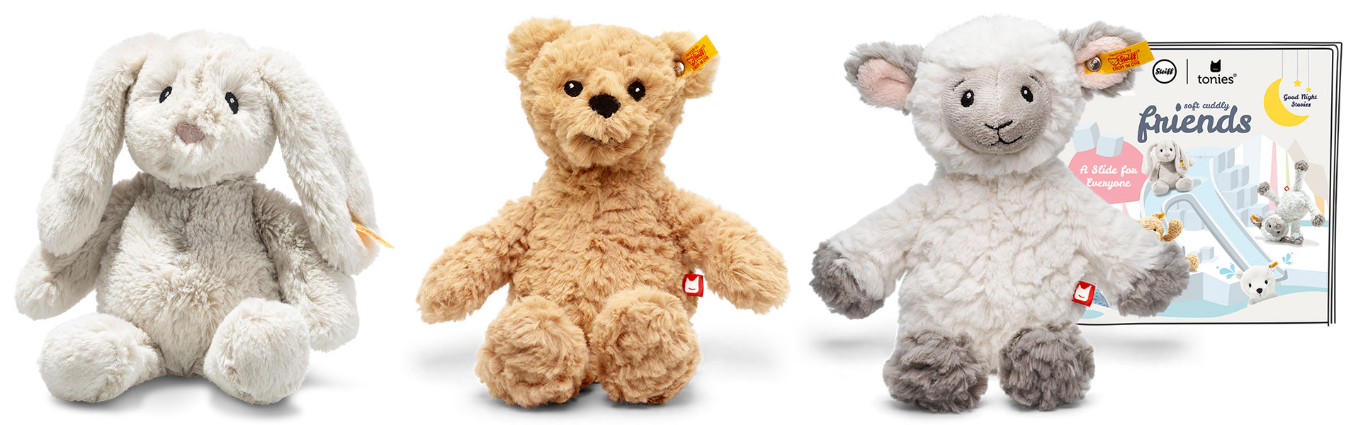 Tonies z veseljem oznanja prihod Soft Cuddly Friends Tonies, ki bo predstavljen v sodelovanju z nemško znamko plišastih igrač Steiff. Čarobna moč pripovedovanja v kombinaciji s čudovitimi, mehkimi plišastimi igračami bo z novo kolekcijo Steiff zagotovo presenetila in očarala malčke, hkrati pa jih vpeljala v pripovedovanje zgodb.