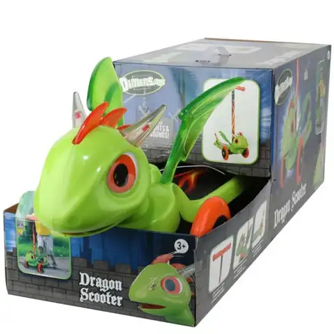 Malčki se lahko počutijo kot pravi jahalci zmajev, saj ta skiro ni edinstven le zaradi treh koles in drzne barve, temveč tudi zaradi oblike zmajeve glave spredaj in okrasa s plamenskim vzorcem na krmilu. Trikolesni skiroji Mondo Toys so idealna izbira za otroke okoli drugega leta starosti, saj je sprednje kolo stabilno in ga je zaradi dvojnega kolesa spredaj enostavno krmiliti. Zaradi kovinskega okvirja so kolesa trdna, kolesa iz mehke plastike pa se dobro kotalijo po vseh površinah.
