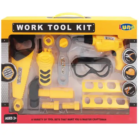 Ta veliki komplet orodja daje otrokom možnost odigravanje raznih opravil, ki so jih videli pri odraslih. Komplet vsebuje ducat pripomočkov, med katerimi najdemo tako zaščitna očala, kot tudi različno orodje, od žage do vrtalnega stroja, kot tudi obdelovance, ki se lahko s pomočjo vijakov iz kompleta pritrdijo med seboj. Kompleti orodij izvrstno razvijajo ročne spretnosti, fino-motorične spretnosti in tehnični smisel otrok.