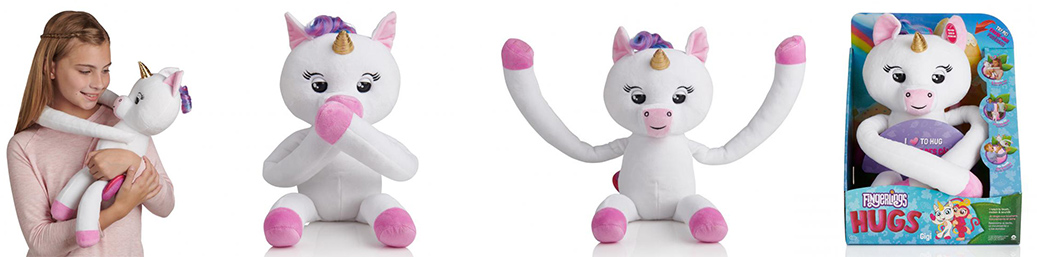 Fingerlings nam je že predstavil veliko vznemirljivih in ljubečih, včasih tudi zastrašujočih stvari, katere so vsi otroci vzljubili. Sedaj nam predstavljajo ljubkega plišastega samoroga, ki se rad objema in katerega boš ti tudi oboževala, izdelan je namreč iz kot puh mehkega materiala in ga lahko vzameš s sabo, tudi obešenega za vrat.