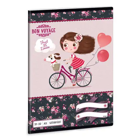Veseli barvni svet in grafika Bon Voyage ti bosta prinesla vesele trenutke med šolski vsakdan. Zvezki slovarji, okrašeni s podobama vznemirljive kolesarske pustolovščine Fred in Louise, ponavadi pospremijo otroke skozi več let, zato so izdelani iz resnično izjemno kvalitetnega papirja. Zahvaljujoč ovitku iz trdega kartona ni potrebe po dodatnem zunanjem ovitku.